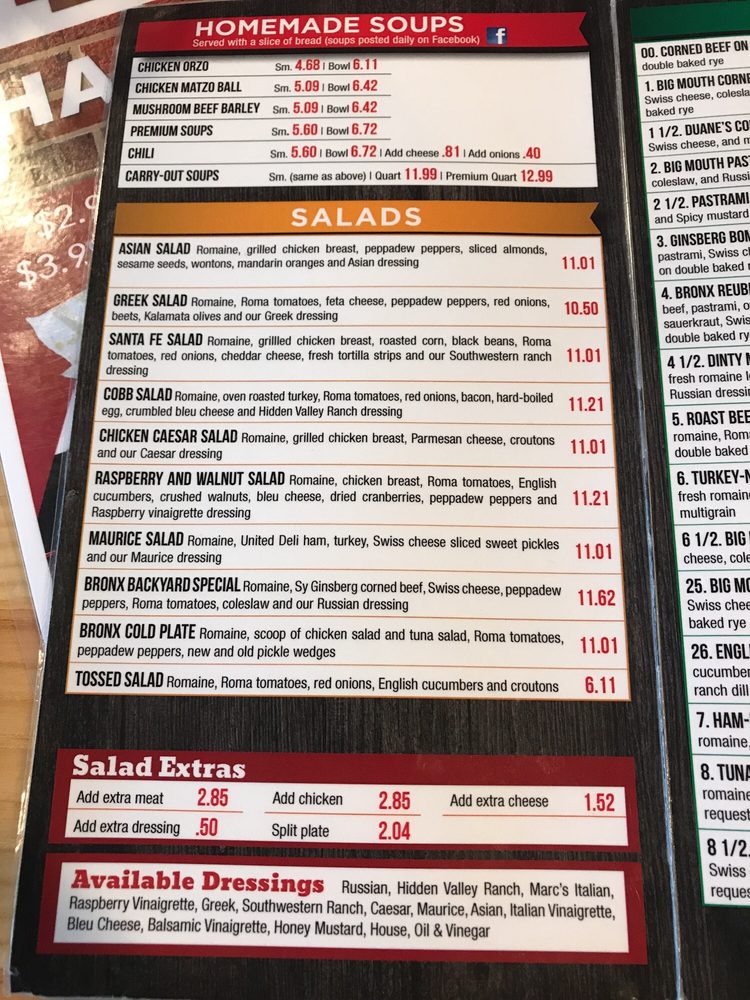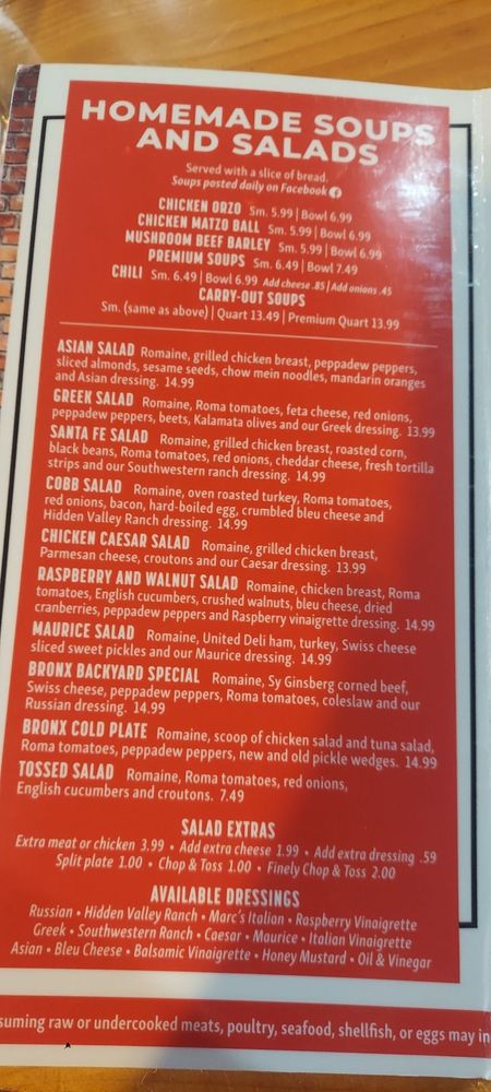 The Bronx Deli Menu (2025 Update)